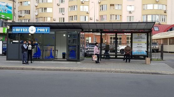 Реклама на остановке в г. Киев на Дніпровська набережна, 25