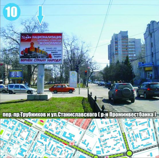 Замовити Білборд в г. Нікополь за адресою пер. пр.Трубников и ул.Станиславского (р-н маг. "АЛЛО") о (направ. ЦУМ) можна зателефонувавши менеджерам за телефонами: +38(099) 395-28-27, або через форму онлайн заявки