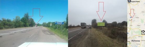 Билборд в г. Трассы на траса Житомир-Коростень (діл жит-черняхів 10км) розвилка с піщанка видимість400м
