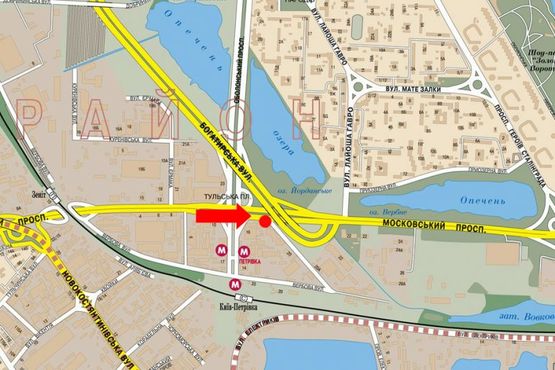 - Адрес: Бандеры пр. (бывш. Московский пр.), 18, разделитель перед мостом, в сторону моста Московского