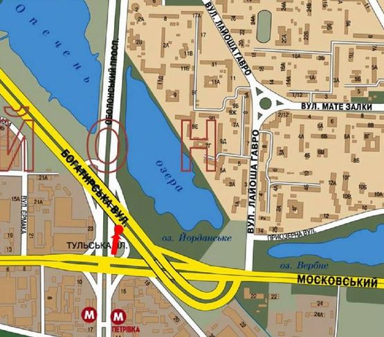 - Адрес: Оболонский пр., Тульская пл. в сторону ст. м. "Оболонь"