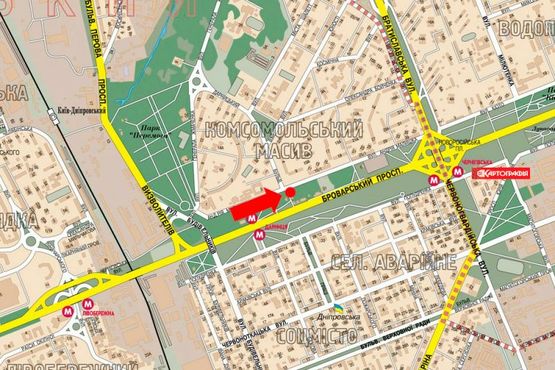 - Адрес: Малышка ул., напротив выезда с Дарницкий бул., в сторону ст. м. "Черниговская"