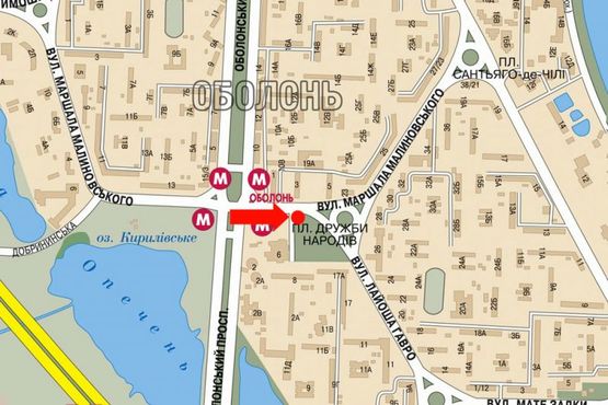 - Адрес: Малиновского ул. / Иорданская ул. (бывш. Гавро ул.), возле "Центр дозвілля", в сторону Оболонская пл.