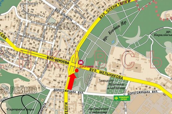 - Адрес: Телиги ул., 15, в сторону ст. м. "Дорогожичи"