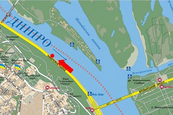 Схема рекламной плоскости по адресу Набережное шоссе, 1100м от ст. м. "Днепр", в сторону Почтовая пл.