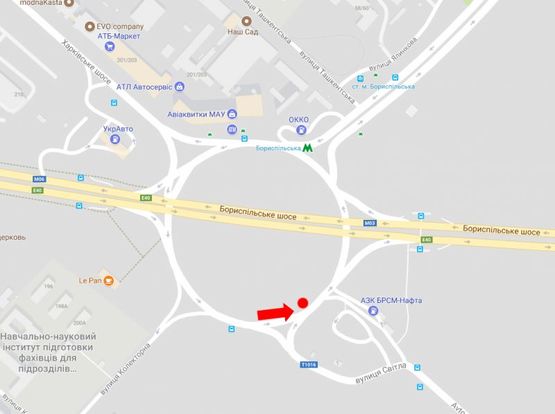 Схема рекламной плоскости по адресу Харьковская пл. / Светлая ул., на кольце, в сторону Борисполя, левая