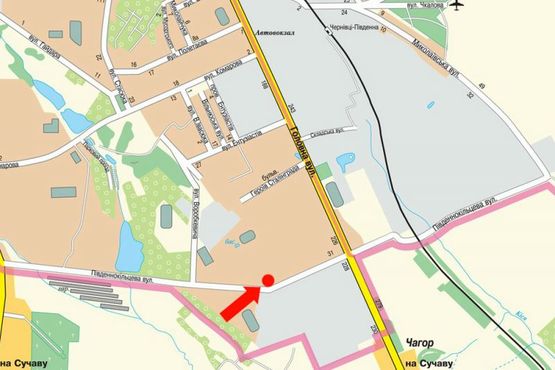 - Адрес: Южнокольцевая ул., 23 / Героев Крут бул., возле рынка, в сторону Главной ул.