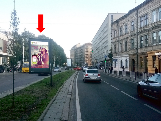 Ситилайт в г. Львов на Черновола пр., 11, разделитель, возле ресторана "Кумпель", в центр