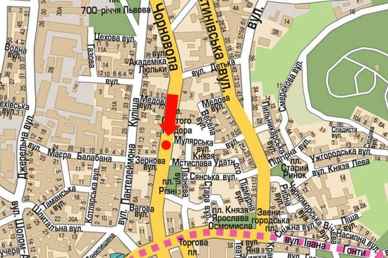 - Адрес: Черновола пр., 11, разделитель, возле ресторана "Кумпель", в центр
