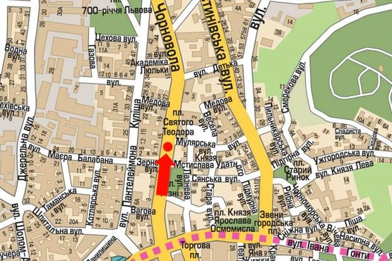 - Адрес: Черновола пр., 11, разделитель, возле ресторана "Кумпель", из центра