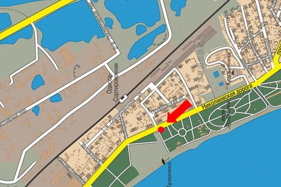Схема рекламной плоскости по адресу Николаевская дорога, 289, возле автостоянки, парка "Лузановка", в центр (флажок)