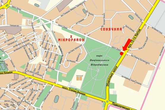 - Адрес: Злуки пр. / 15-го Апреля ул., возле ТЦ "Мандарин", супермаркета "Сильпо", в центр, правая