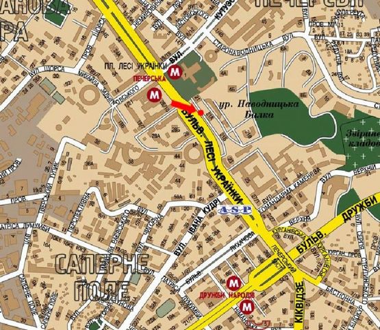 - Адрес: Украинки бул., 21, в сторону Дружбы народов бул.