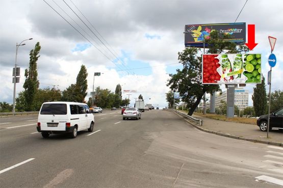 Фото рекламной плоскости по адресу Соборности пр. (бывш. Воссоединения пр.) / Березняковская ул., мост, перед АЗС "Окко", в сторону Дарницкая пл. (бывш. Ленинградская пл.)