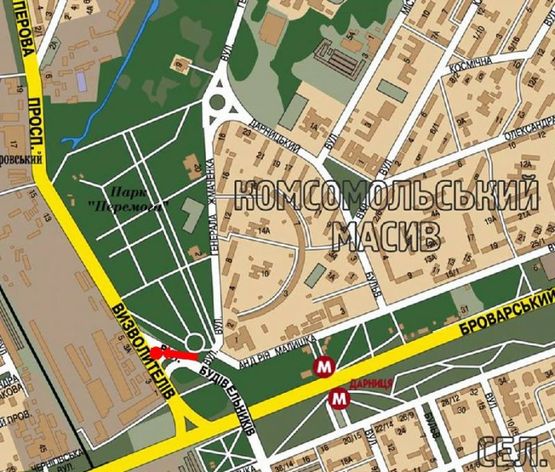 Призма в г. Киев на Освободителей пр., 3А, напротив, разделитель, в сторону Перова бул.