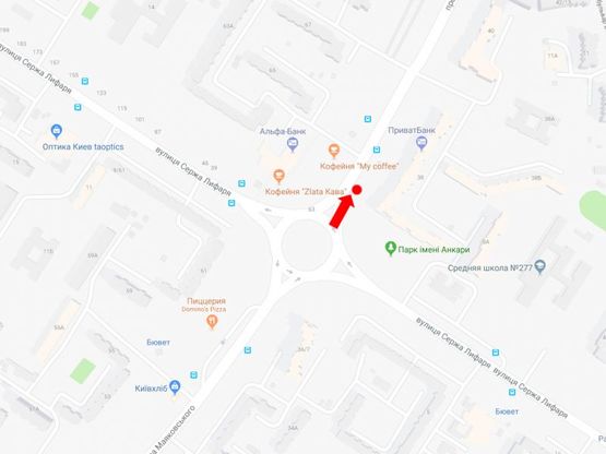 Призма в г. Киев на Маяковского пр., 38/10 - ул. Лифаря (бывш. ул. Сабурова), в сторону ул. Цветаевой, из центра