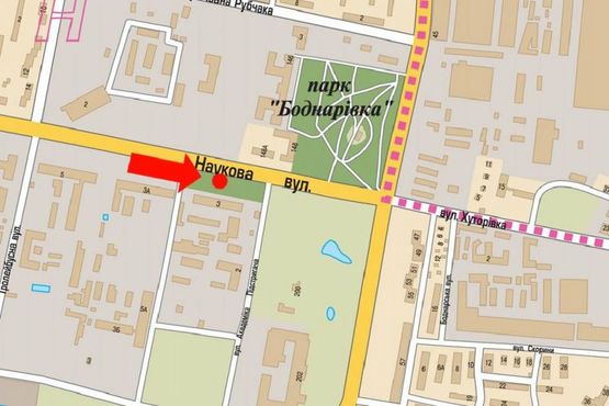 Призма в г. Львов на Научная ул., 3, в сторону Стрыйской ул., разделитель