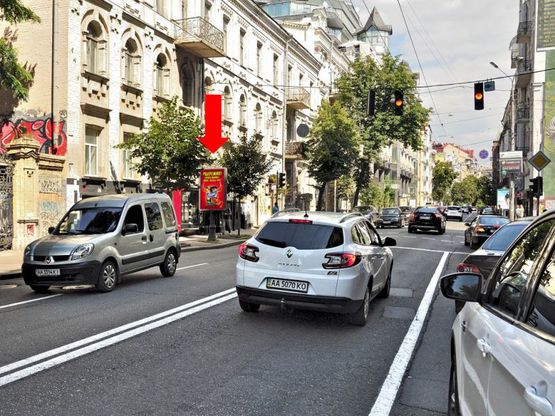 Ситилайт в г. Киев на Б. Житомирская ул., 26-Б / Гончара ул., светофор, в сторону Владимирская ул.
