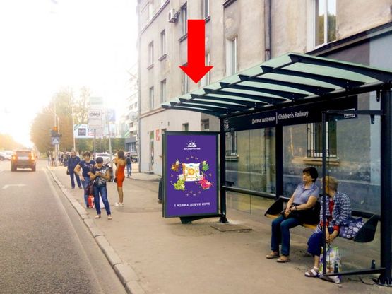 Ситилайт в г. Львов на Стрыйская ул., 72 / ул. Сахарова (остановка Детская железная дорога), из центра