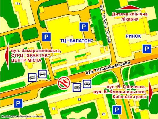 - Адрес: вул. Мазепи (навпроти ТЦ "Балатон", розмір 2,3 х 3,2 м скролл