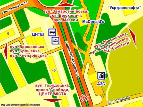 Черновола пр., 9 / Зерновая ул., разделитель, возле отеля "Львов", на светофоре, из центра А \ Есть 6400