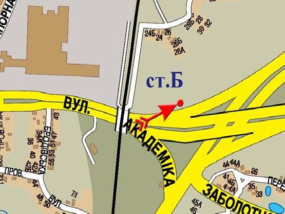 - Адрес: Заболотного Ак. ул., 100 м до ж/д моста, на Столичное шоссе