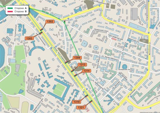 Схема рекламной плоскости по адресу Леси Украинки бул, между ул. Госпитальная и пер. Щорса