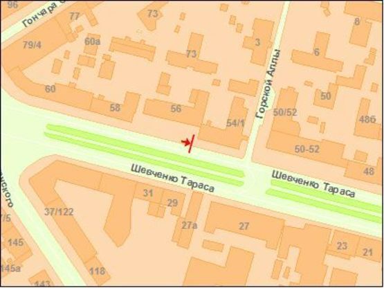 Схема рекламной плоскости по адресу Тараса Шевченко бул. 54/1