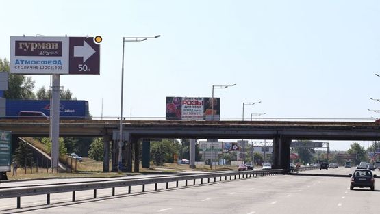 Билборд в г. Киев на Столичное шоссе, съезд с Заболотного Ак. ул., напротив ТЦ "Домосфера", ТРЦ "Атмосфера", из Киева
