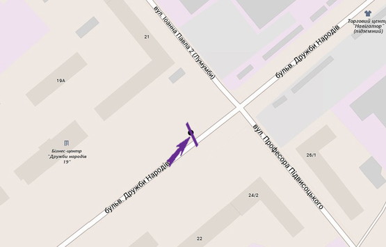 Схема рекламної площини за адресою бул. Дружбы Народов,21