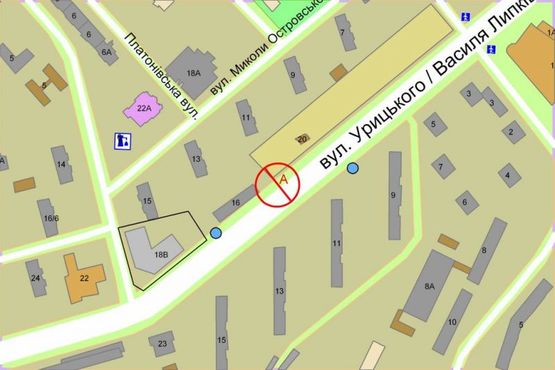 Схема рекламної площини за адресою Василия Липковского ул. (Урицкого), 16 (возле автостоянки)