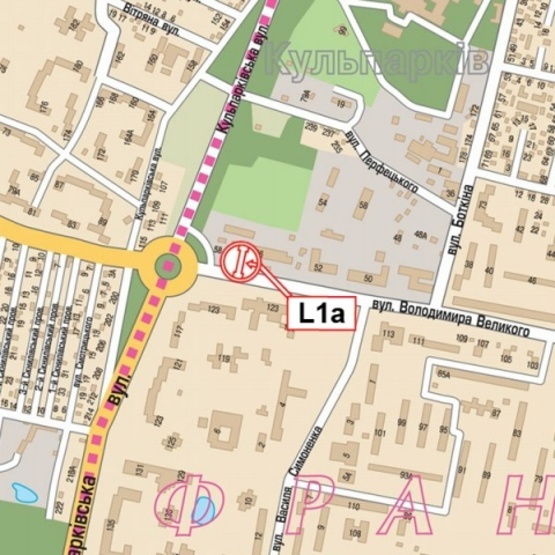 - Адреса: Великого В.ул., 54 (150м к перекрестку с ул. Кульпарковской), (АЗС "ОККО", пиццерия "Челентано", СТО, Львовский проэктный Ин-т), в направл. ул. И.Выговского