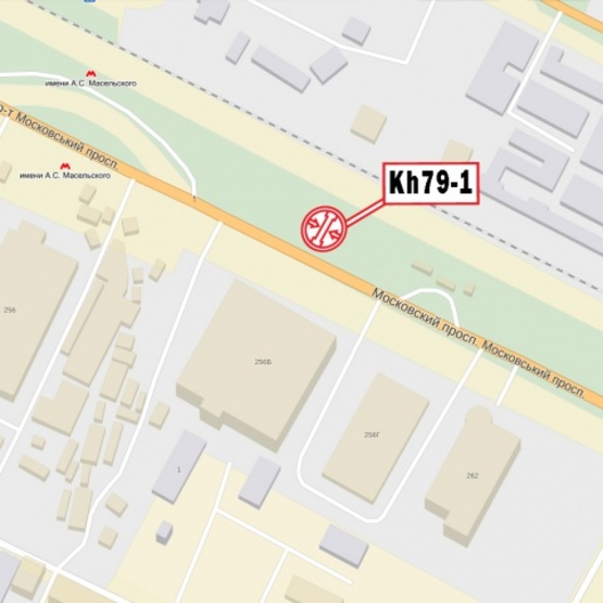 Схема рекламної площини за адресою Московский просп., напротив 256-В, в центр (ТРЦ Экватор, СМ Варус, автоцентр NISSAN, продуктовый рынок)