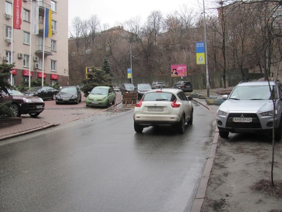 Скролл в м. Київ на Кловский спуск, 14, (Правекс Банк, Укртрансгаз, "Bereznitsky Gallery", UniCredit банк, мото "Biker Store"), в направ. Московской ул.