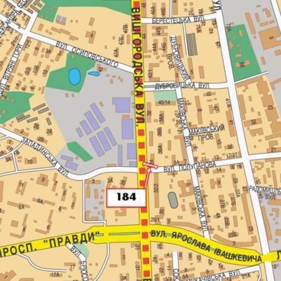 - Адреса: Вышгородская ул./ ул. Приорская (ул. Полупанова) (магазин "Star Watch", в направлении Минского прсп.)