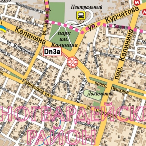Схема рекламної площини за адресою Нигояна Сергея просп. (Калинина ул.) - Леваневского ул., (500м. к ст.м. Вокзальная, Парк им. Калинина, "Курчатовский рынок", Армянская церковь), в направл. просп. Пушкина