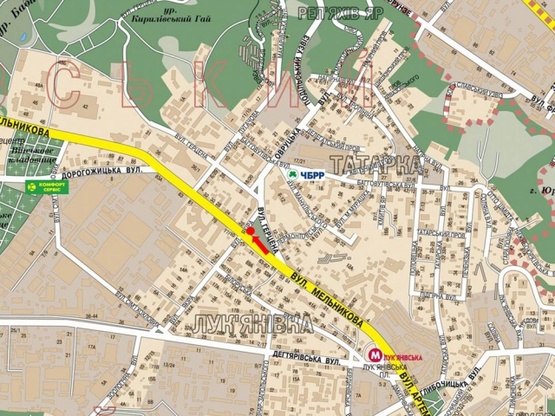 - Адреса: Мельникова ул. / ул. Якира, светофор, в сторону ст. м. "Дорогожичи"