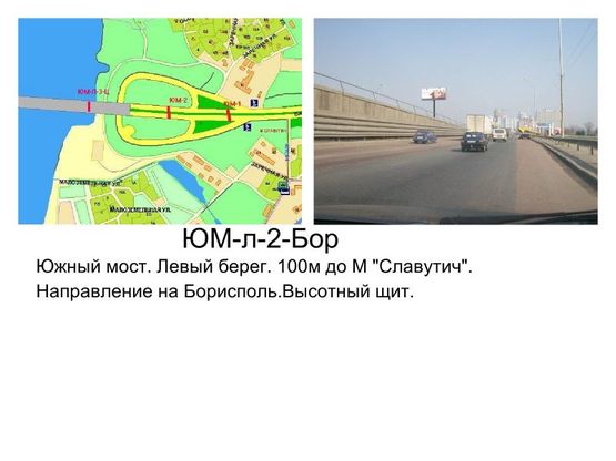 Замовити Білборд в г. Київ за адресою Южный мост пр Бажана150м от ст. М. Славутич. Напр. в Борисполь.Левый берег. можна зателефонувавши менеджерам за телефонами: +38(099) 395-28-27, або через форму онлайн заявки