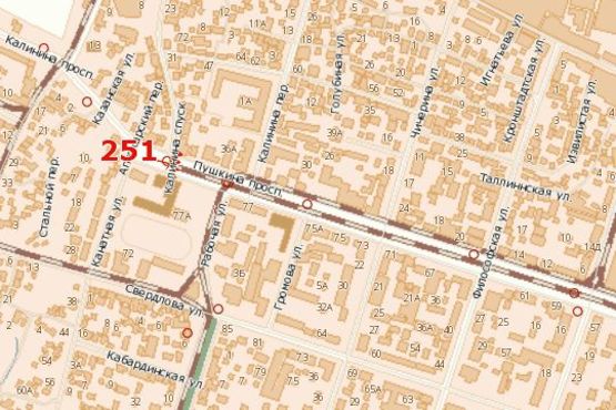 Схема рекламної площини за адресою Пушкіна просп. - Сергія Нігояна прос. - Канатна вул. (призма)