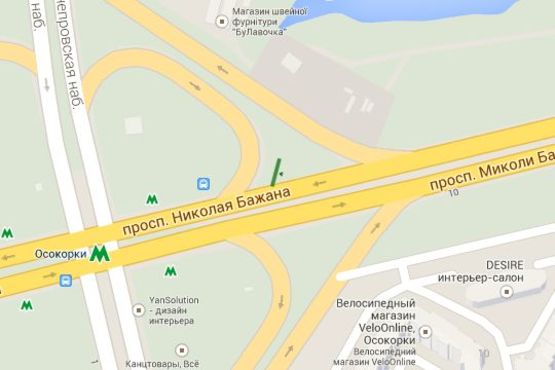 Схема рекламної площини за адресою Миколи Бажана просп., : 200 м до транспортної розвязки з Дніпровскою набережною (в напр. Південного моста)