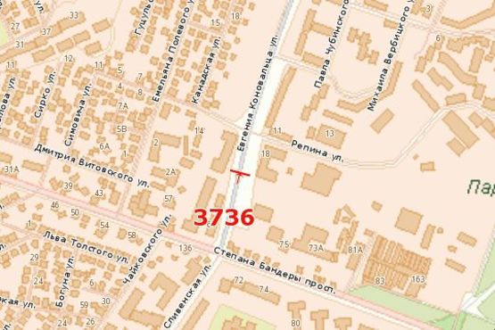 - Адреса: Євгена Коновальця вул. - Рєпіна вул.