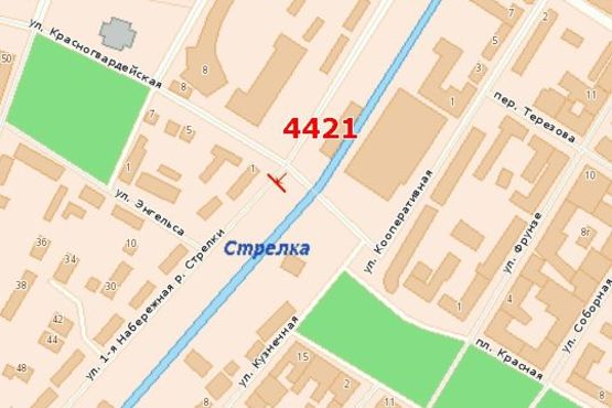 - Адреса: Покровська пл. - 1-а Набережна р. Стрілки вул.