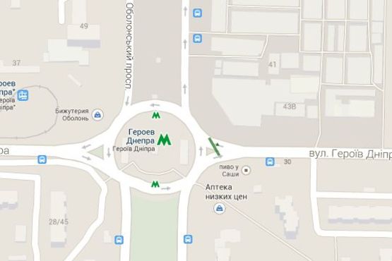 - Адреса: Оболонський просп. - Героїв Дніпра вул., на кільцевому розподільнику (заезд з Героїв Днепра)