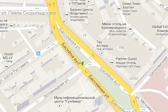 Кловский спуск, 14, (Правекс Банк, Укртрансгаз, "Bereznitsky Gallery", UniCredit банк, мото "Biker Store"), в направ. Московской ул. А \ Есть 10000