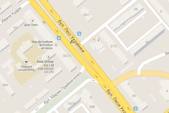 - Адреса: Лесі Українки бульв., 34 (ресторан "Якіторія") (асф.розподільник); №12 ((2-скрол))
