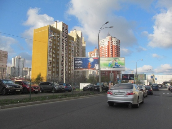 Призма в м. Київ на ул. А.Ахматовой, разделитель напротив дома 41, в направлении Днепровской набережной (левый)