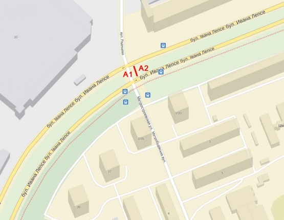 Схема рекламної площини за адресою Вацлава Гавела (Лепсе) бул./Метростроевская (на разделителе). По направлению к ул. Гарматной
