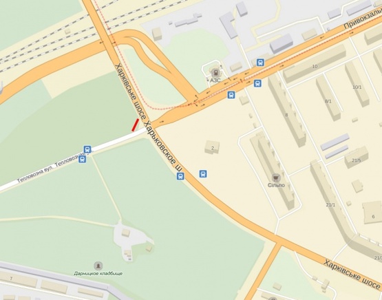 Схема рекламної площини за адресою Харьковское шоссе - пересечение с ул. Привокзальной, перед Дарн. Мостом, на Ленигр.пл.