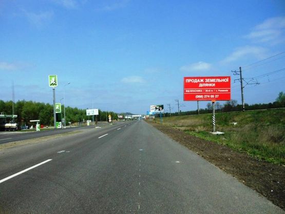 Білборд в м. Траси на Дніпровське шосе, 1,5 км до поворота на с. Лісники, за АЗК ОККО, траса Н-01 "Київ-Знам'янка", км 22+550 ліво