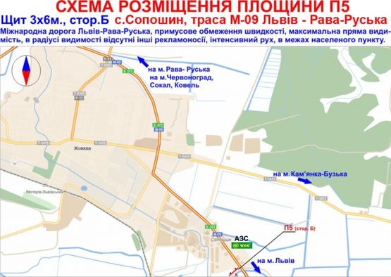 - Адреса: на границу с Польшей, (г.Рава- Русская), на г.Червоноград + въезд в г.Жовква, трасса Львов- Рава-Русская (М-09) +АЗС